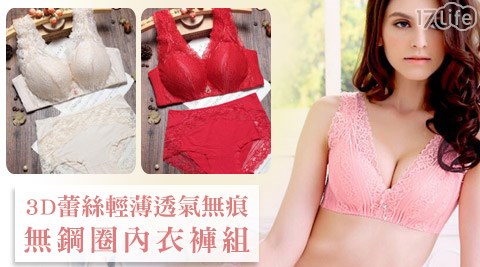 品名:3D蕾絲輕薄透氣無痕無鋼圈內衣褲組